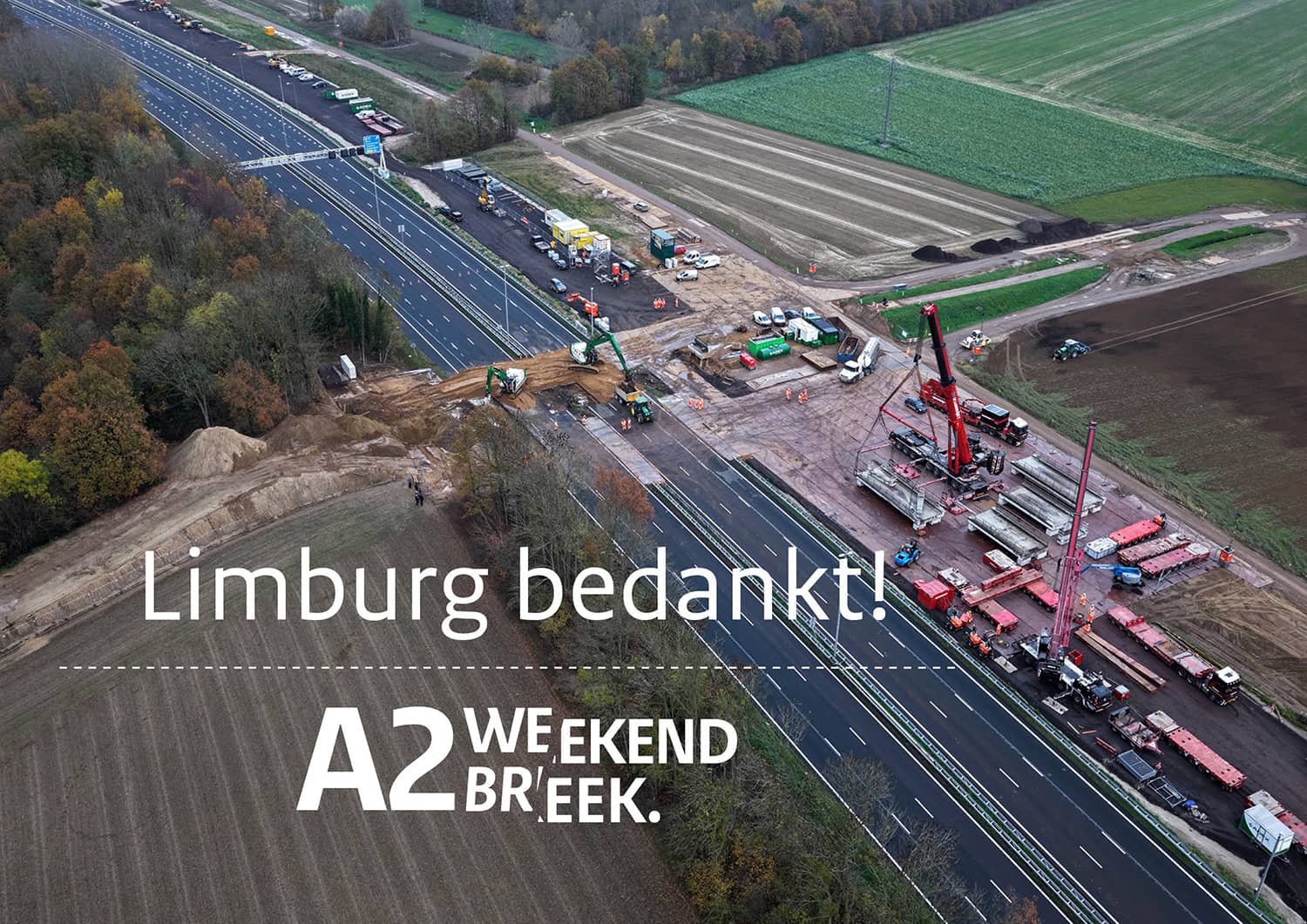 Rijkswaterstaat bedankt Limburg voor succesvolle eerste weekendafsluiting A2