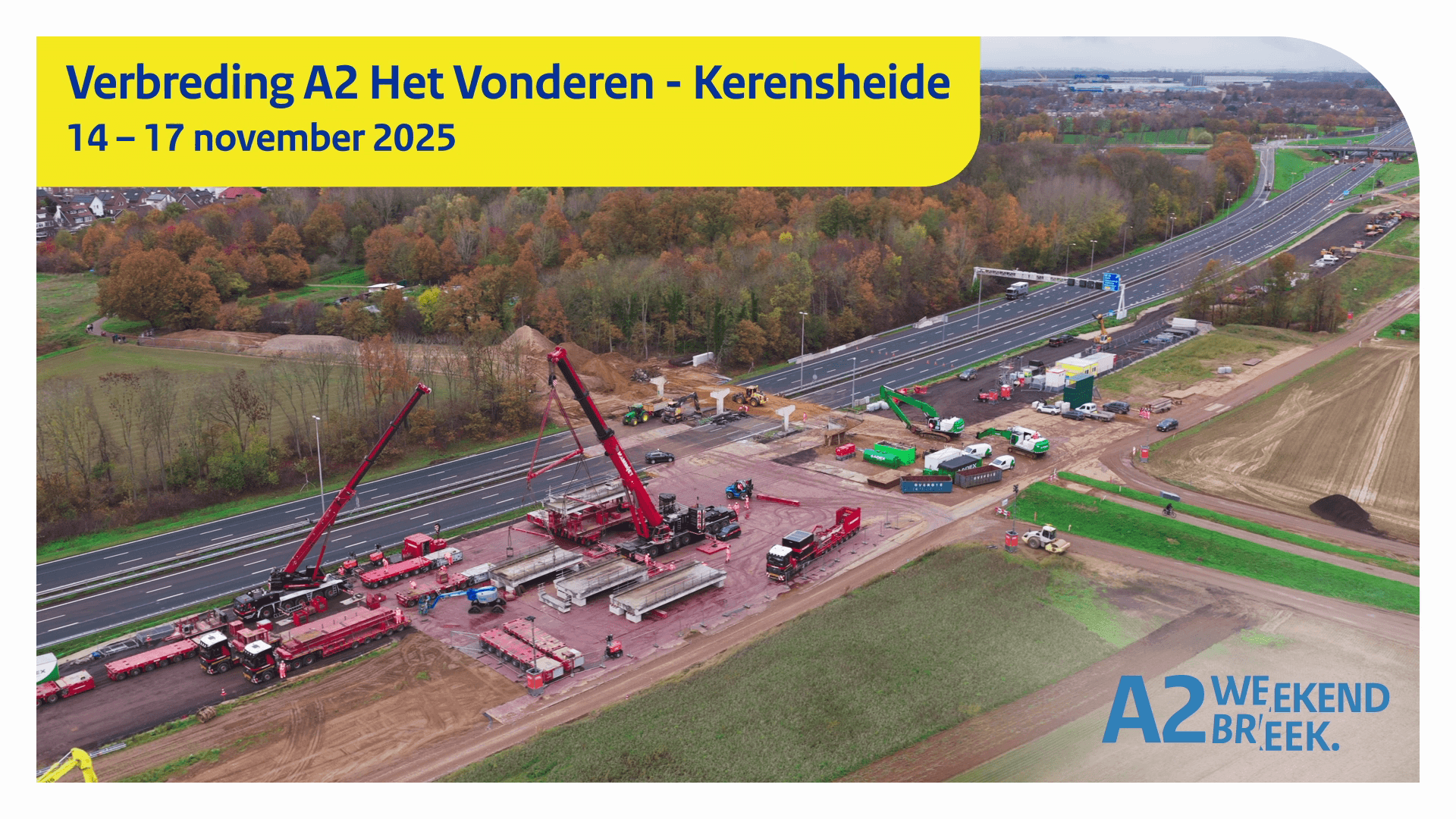 (Beeldtitel: Verbreding A2 Het Vonderen - Kerensheide. 14 - 17 november 2025.)