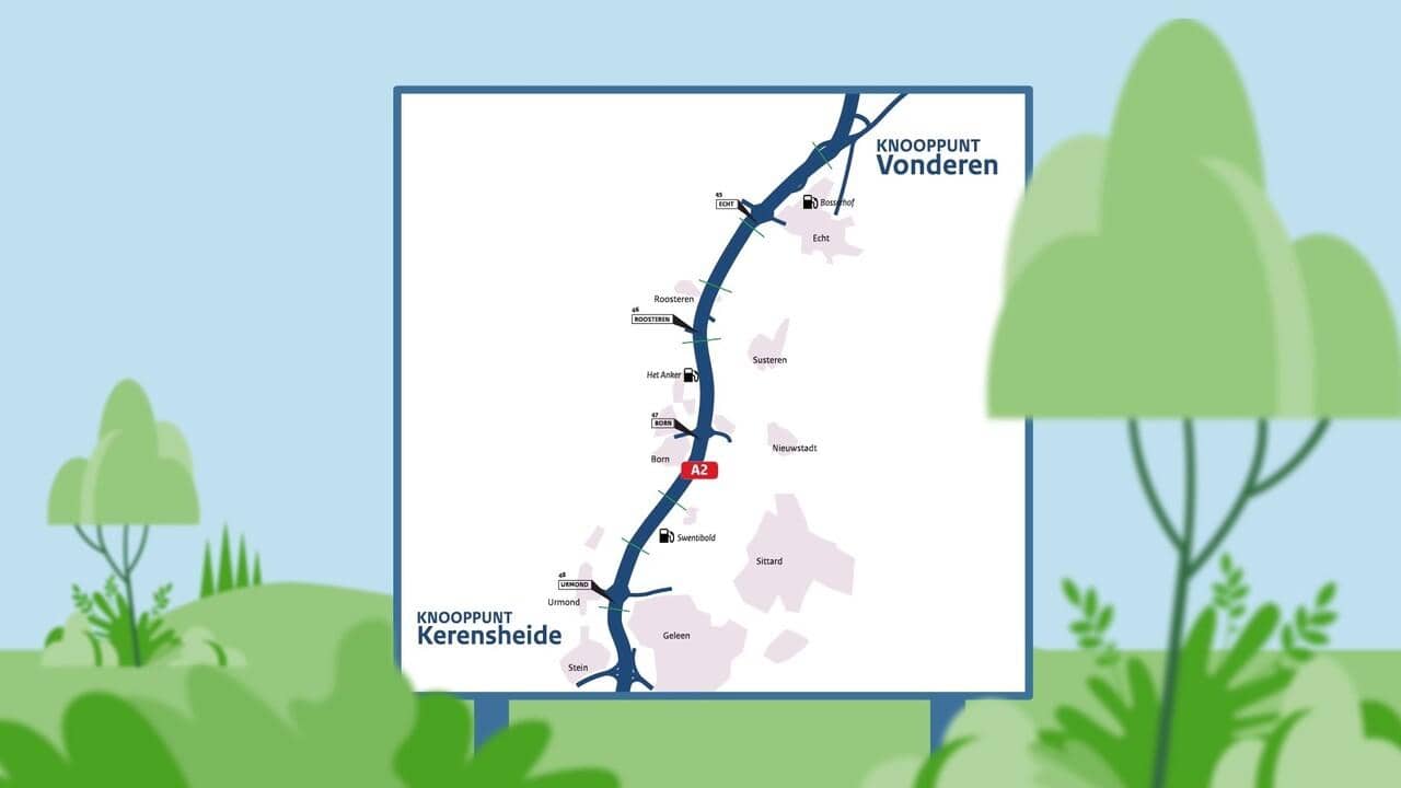 De snelweg A2 Het Vonderen - Kerensheide is een cruciale verbinding in Limburg en voor de rest van het land. Het 18 kilometer lange tracé loopt door het smalste stukje Nederland, nog geen 5 kilometer breed.